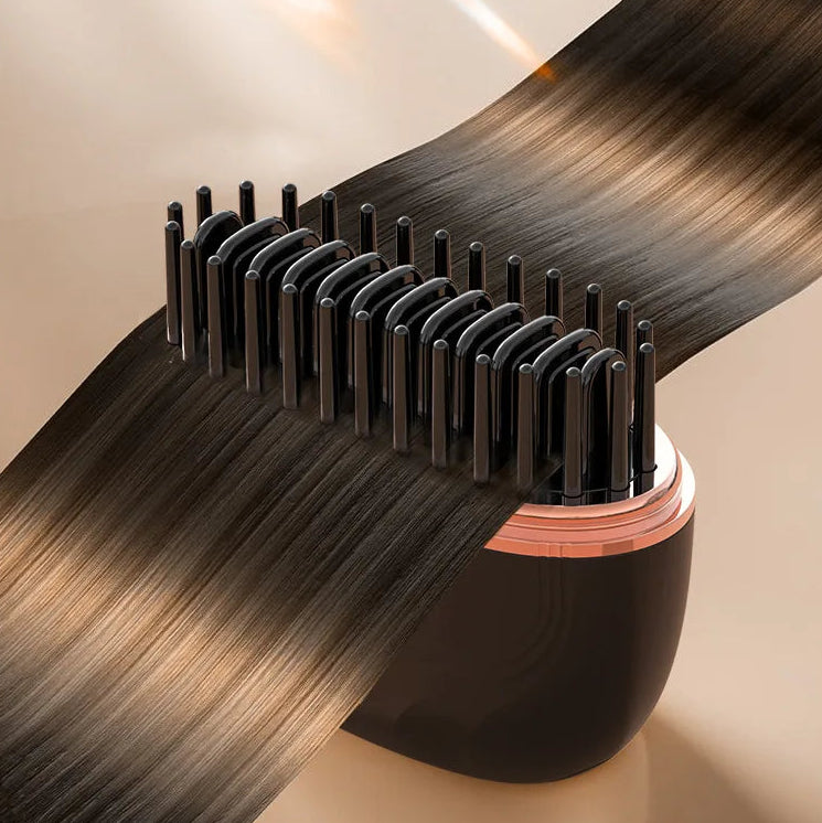 Its dual-edge heated comb guides hair through each pass, ensuring smoothness without snagging or pulling.
